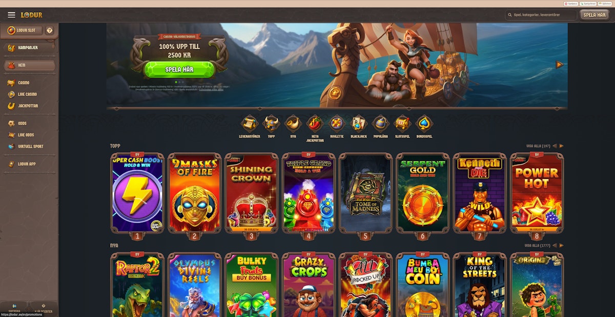 Från företaget bakom bland andra välkända Swiper och Betinia kommer nu det nya spelbolaget Lodur till den svenska marknaden! Det märks att det är samma ägare bakom då spelupplevelsen är relativt lika bolagets andra casinon, men med en trevlig bonus även här är Lodur helt klart värt att testa.